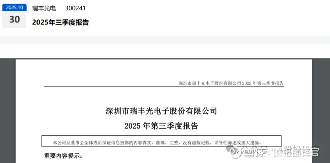 各位财友,看财报就像下棋,关键不在于眼前的一兵一卒,而在于整个棋局的排兵布阵。当一家公司同时在消费电子和虚拟现实两大赛道落子时,这盘棋就值得我们好好研究。$瑞丰光电(SZ300241)$
