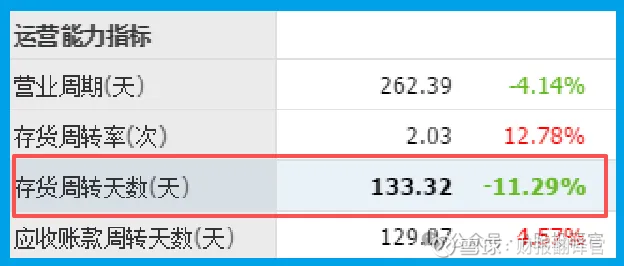 产品销售速度133天,同比加快11.29%,这个数据在制造业中相当亮眼。