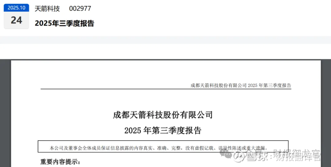 今天,财官就带各位一起化身财报侦探,拆解天箭科技这份“矛盾重重”的三季报,看看国际资本到底在布局什么。$天箭科技(SZ002977)$