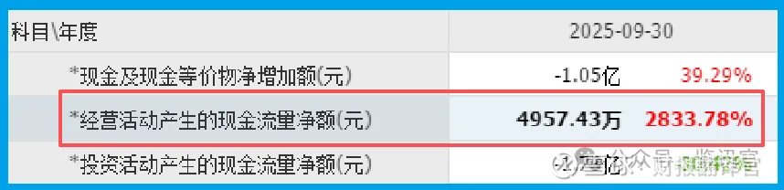 然而,公司销售商品收到的现金净额却同比暴增2833.78%,达到4957.43万元。