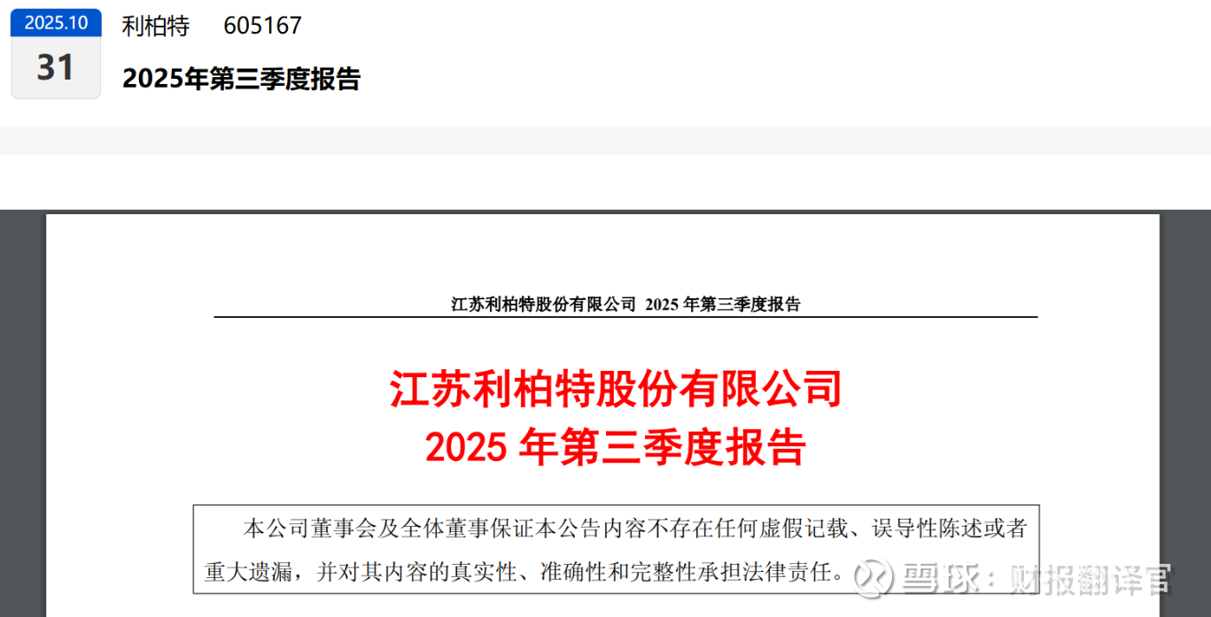 利柏特2025年三季报显示,业绩为1.78亿元,同比下降了11.15%。利润下滑,这第一眼印象,足以让很多追求即期增长的朋友皱起眉头。$利柏特(SH605167)$