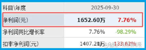 首要物证,是那份“温和”的利润表。 前三季度净利润1652.60万元,同比仅仅增长了7.76%。