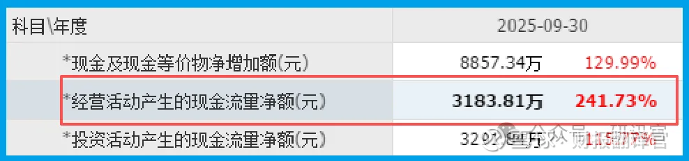 但就在同一时间维度,另一组数据却灼热得发烫:公司销售商品、提供劳务收到的现金净额高达3183.81万元,同比暴增241.73%。