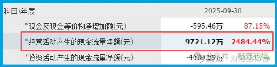 更具说服力的是其现金流表现:公司销售商品收到的现金净额为9721.12万,同比增长了2484%,这极其直观地反映了主营业务回款能力质的变化,资金正大量涌入。