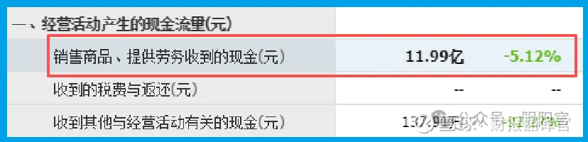其次是现金流的充沛与安全:销售商品收到的现金高达11.99亿元,超过了当期的营业收入总额。