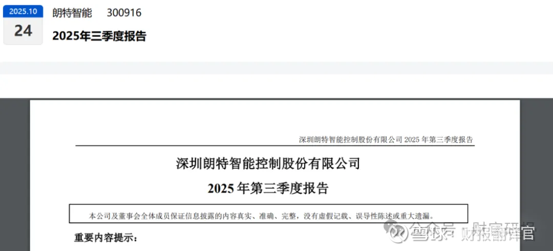 朋友们,我是财官。朗特智能三季报净利润8636.97万元,同比下滑了17.05%。这像一块显眼的污渍,让很多人可能就此止步。但请等一等,如果你的侦探本能足够敏锐,你会立刻注意到三个极其反常的细节:它的现金回款远超利润,它的坏账准备竟然是负数,它的存货创下了历史新高。$朗特智能(SZ300916)$