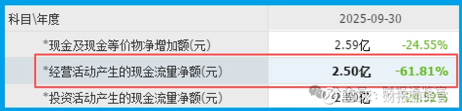 我们发现,公司销售商品、提供劳务收到的现金净额为2.5亿元,这个数字与当期净利润规模基本相当。