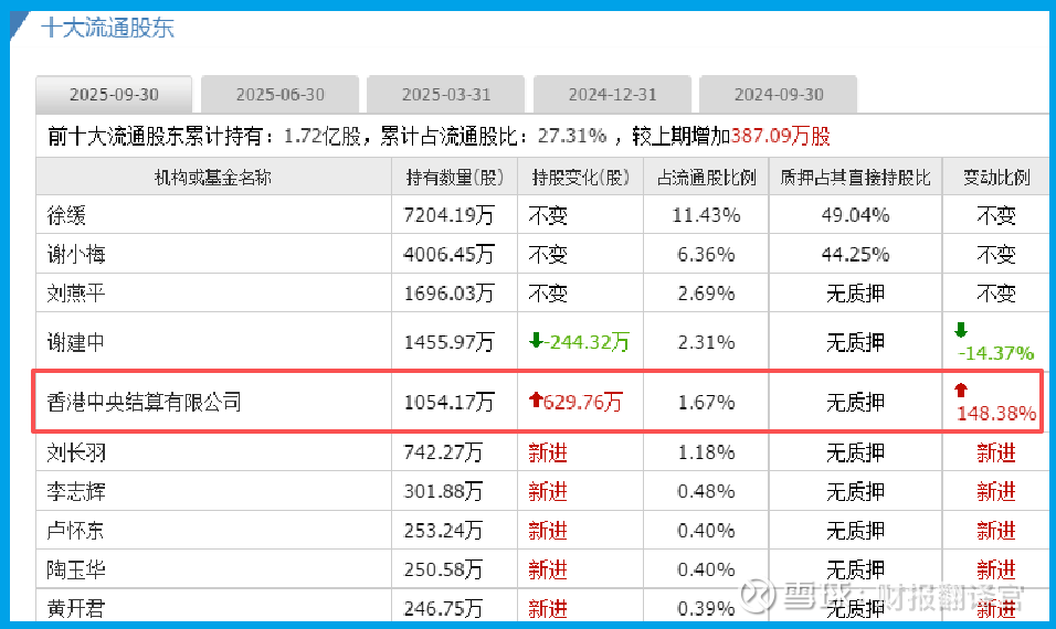 香港中央结算有限公司(北向资金)在第三季度,将其持仓大幅增加了148%。