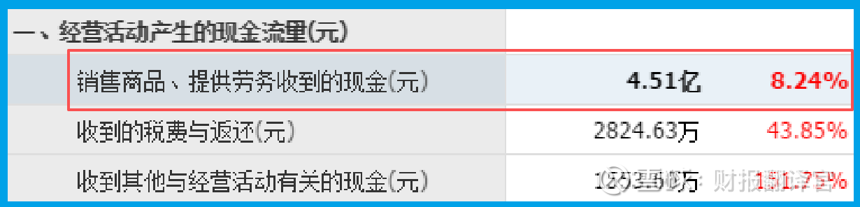 销售商品收到的现金总额为4.51亿,不仅同比增长了8.24%,而且这个数字与当期营业收入规模相当。