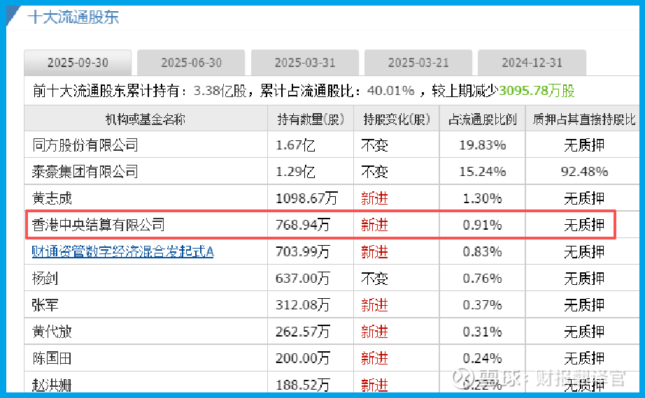 同时,股东名单里出现了一个熟悉的身影:香港中央结算有限公司(北向资金)位居第四大流通股东。