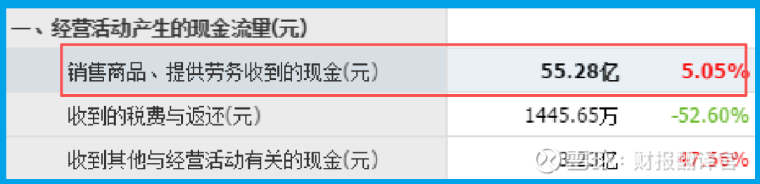 更硬的证据是现金流:销售商品收到的现金高达55.28亿,同比增长5.05%。