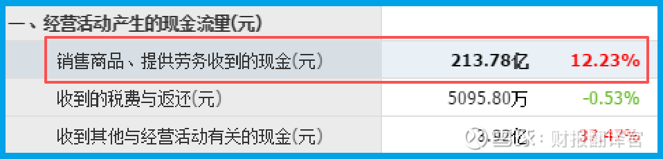 更硬的证据来了。公司销售商品收到的现金高达213.78亿,同比增长12.23%,规模与营收相当。