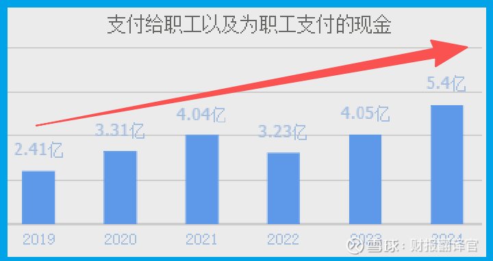 公司为职工支付的现金在2024年度达到了创纪录的5.4亿元,并且已连续多年增长。