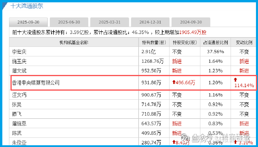 但就在同一份报告里,另一个数据却让所有经验都失效了:代表北向资金的香港中央结算有限公司,持股数量暴增了114%。