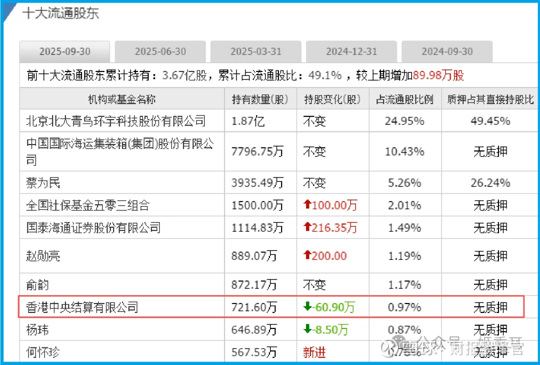 与此同时,香港中央结算有限公司(代表北向资金)也稳居前十大流通股东之列。