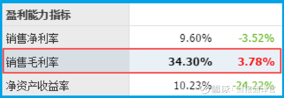 接着,财官检查了盈利的“指纹”——销售毛利率。数据显示为34.30%,同比提升3.78%。