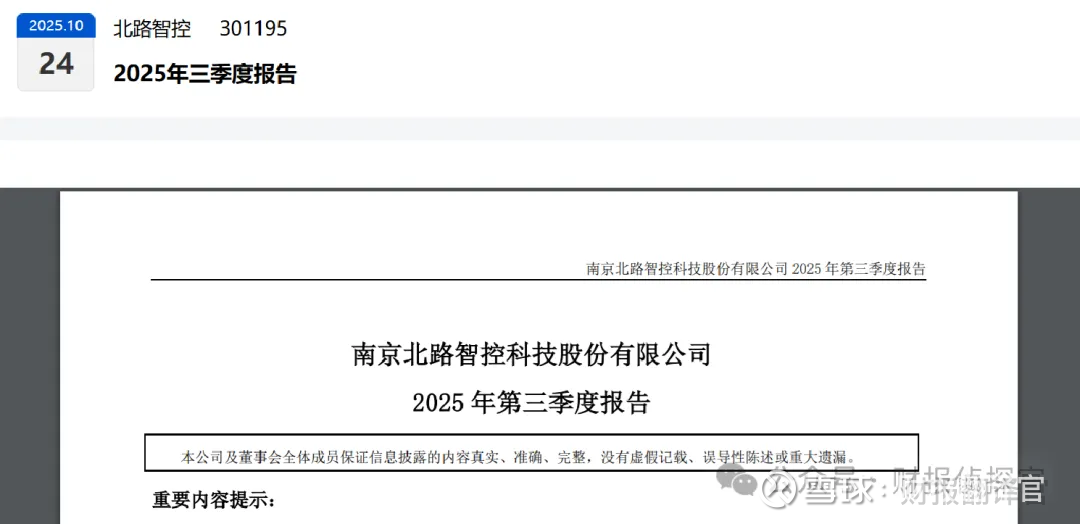 朋友们,我是财官。今天,我们来解密一份代号“北”的装备制造企业三季报。案发现场第一印象就充满悬疑:核心业绩指标“负伤”明显。但财官的直觉告诉我,这起“业绩下滑案”,背后可能另有隐情。$北路智控(SZ301195)$