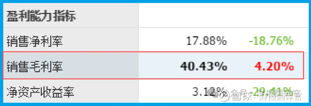 然而,就在这个警报旁边,却摆着一份近乎“炫富”的证据:公司的销售毛利率高达40.43%,甚至还同比增长了4.20%。