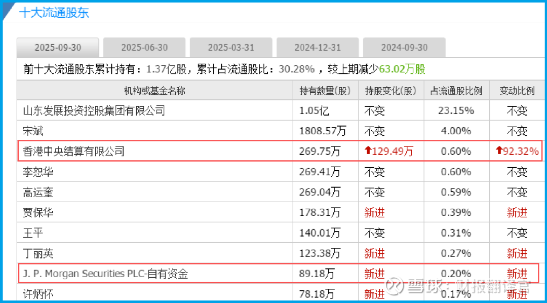 而与此同时,股东名册上,J. P. Morgan Securities PLC-自有资金(美国摩根)新进前十,香港中央结算有限公司(北向资金)更是暴力加仓92%。
