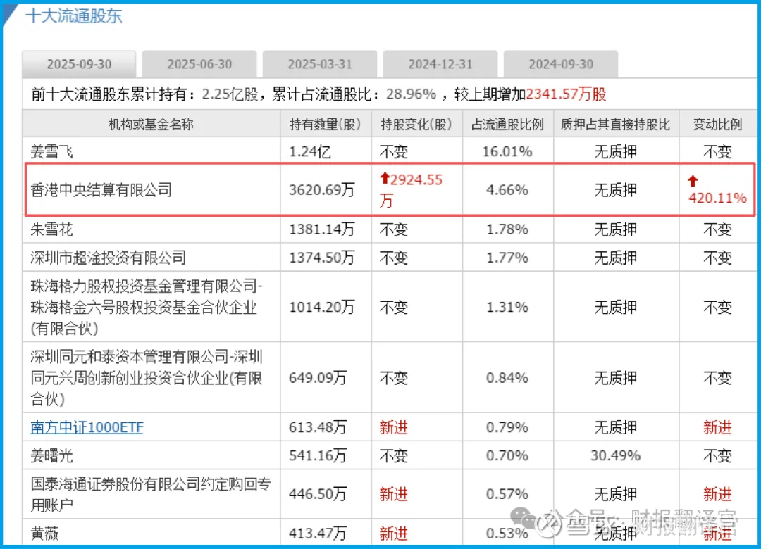 但卷宗附注却写道:北向资金(香港中央结算有限公司)持仓暴增420.11%。