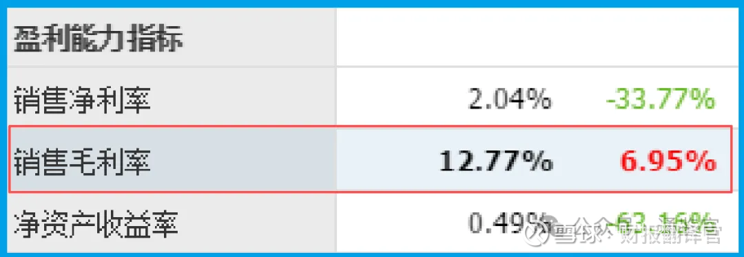 但财官注意到一个反常细节:销售毛利率12.77%,逆势增长6.95%。