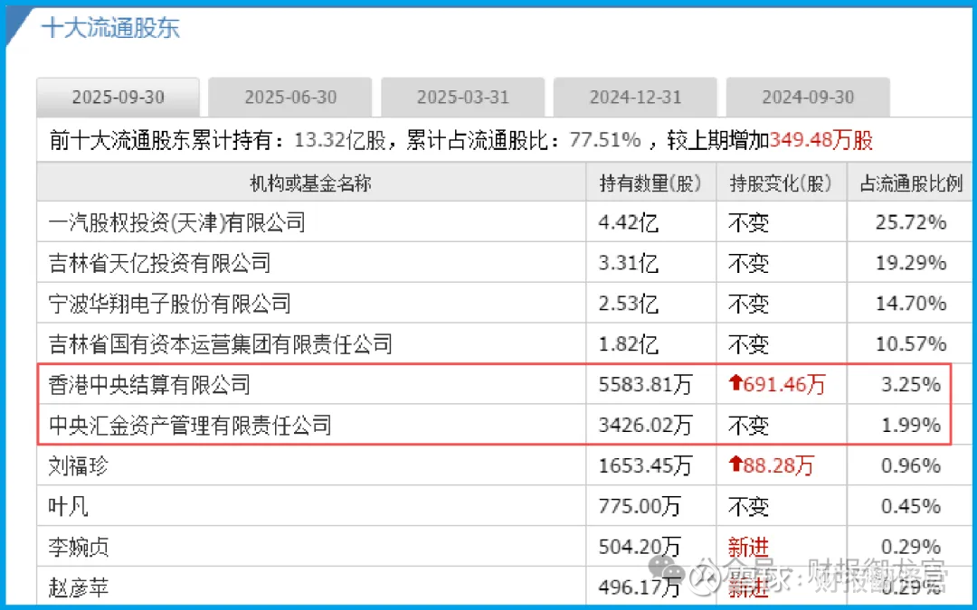 谁在见证这场转型?财官翻看股东名册,看到了意味深长的组合:中央汇金资产管理有限责任公司位列前十大股东,同时香港中央结算有限公司的持股大幅加仓14%。