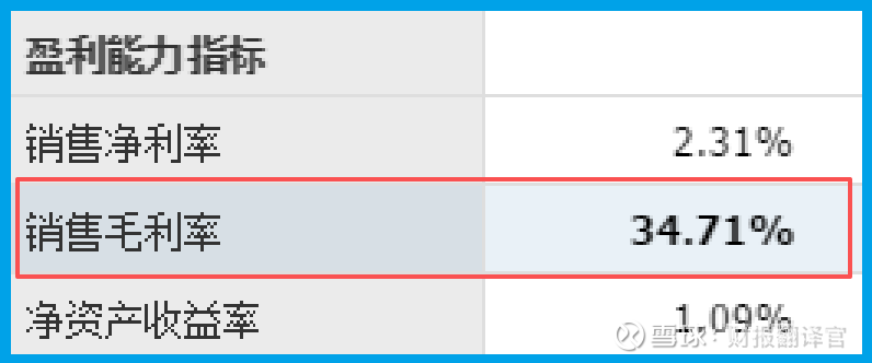 第一组矛盾:净利润暴跌75.65%,但销售毛利率却高达34.71%。