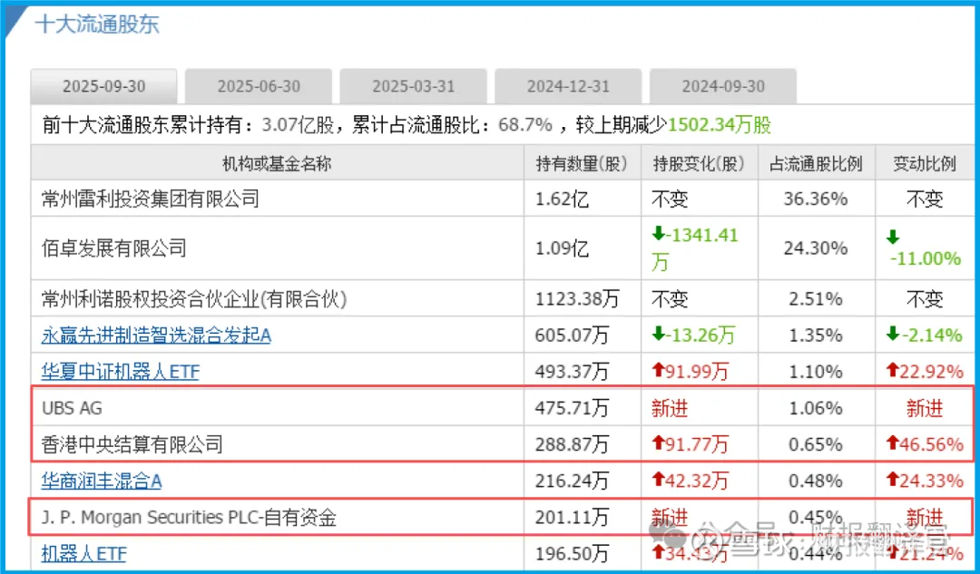 J. P. Morgan Securities PLC(摩根大通)、UBS AG(瑞银) 这两大国际顶级机构的自有资金赫然位列前十大流通股东;