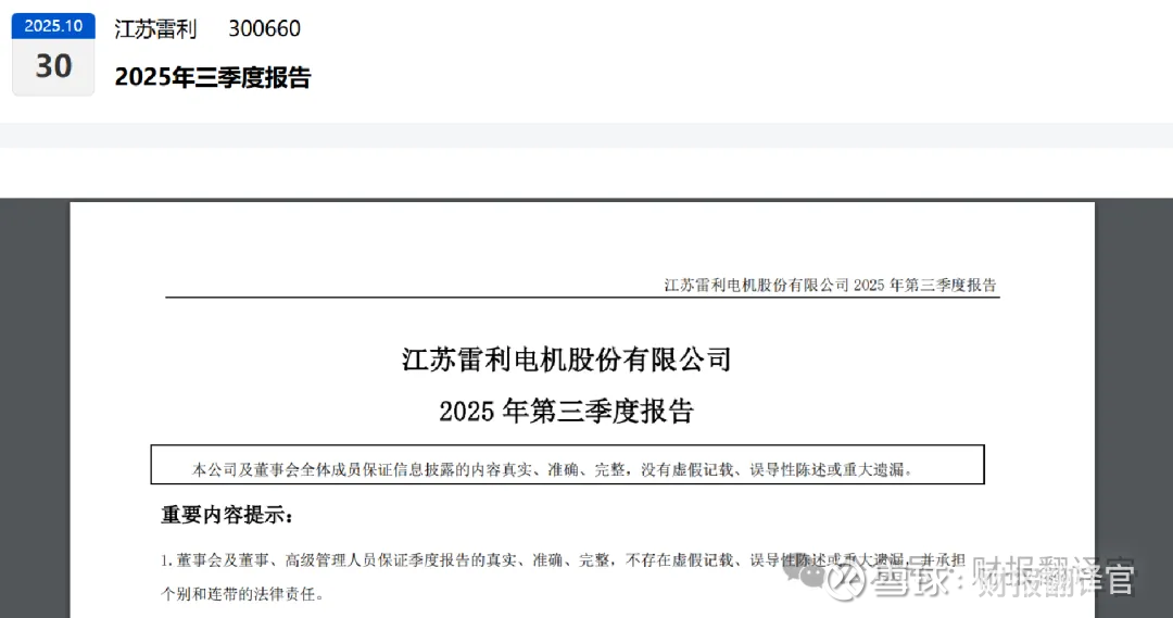 各位朋友,我是财官。今天,财官要带大家潜入一家被市场目光聚焦的公司——江苏雷利的财务迷宫。这份财报,表面风平浪静,实则暗藏玄机。$江苏雷利(SZ300660)$