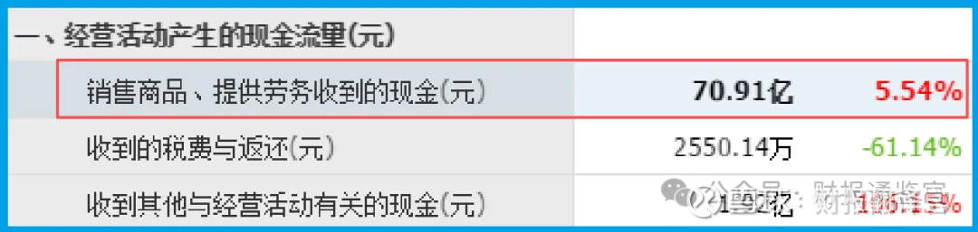 数据显示,公司销售商品收到的现金总额为70.91亿元,不仅同比增长5.54%,而且高于当期的营业收入。