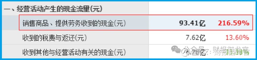 但请转身,看向现金流量表。这里发生了一起“现金劫案”——“销售商品、提供劳务收到的现金”总额高达93.41亿元,同比暴增216.59%!