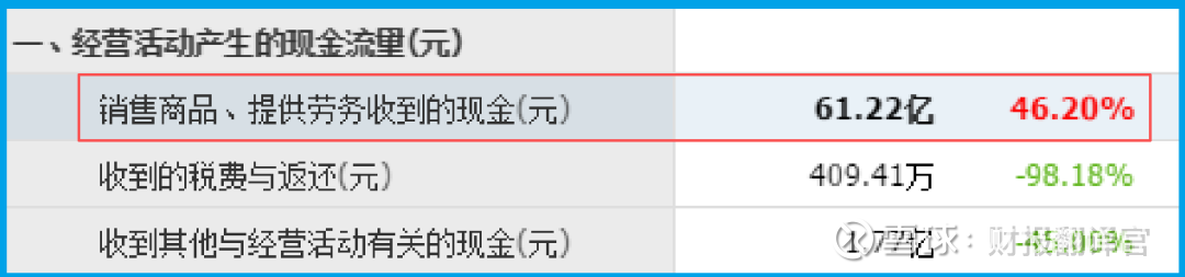 核心证据二:销售商品收到的现金总额61.22亿,增长46.20%,且高于营业收入。