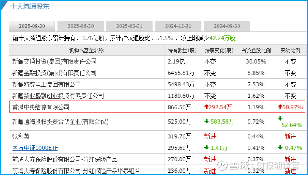 大家好,我是财官。最近,一家地处西部的基建巨头就上演了这样一出“暗度陈仓”。新疆交建,名字听起来就和“新潮科技”沾不上边。但它的财报里,却接连蹦出几个让财官眉头一挑的线索:香港中央结算有限公司(俗称“北向资金”)突然暴力加仓51%。$新疆交建(SZ002941)$