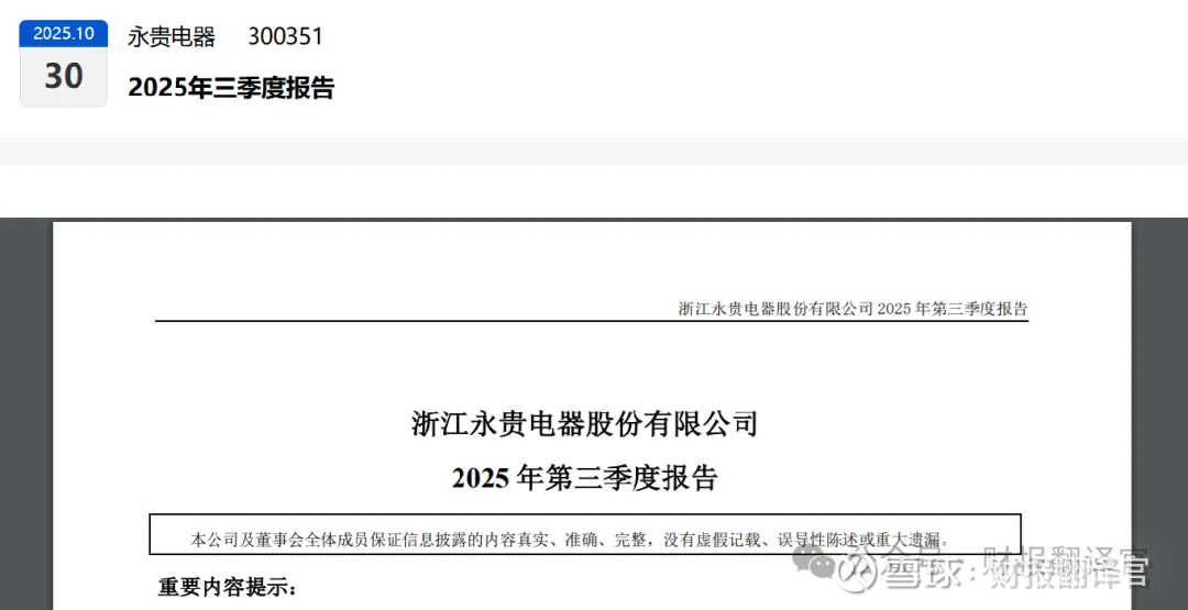 主角名叫永贵电器。翻开其三季报,一个刺眼的数字跃入眼帘:2025年前三季度业绩为7120.67万元,同比下降了29.25%。$永贵电器(SZ300351)$