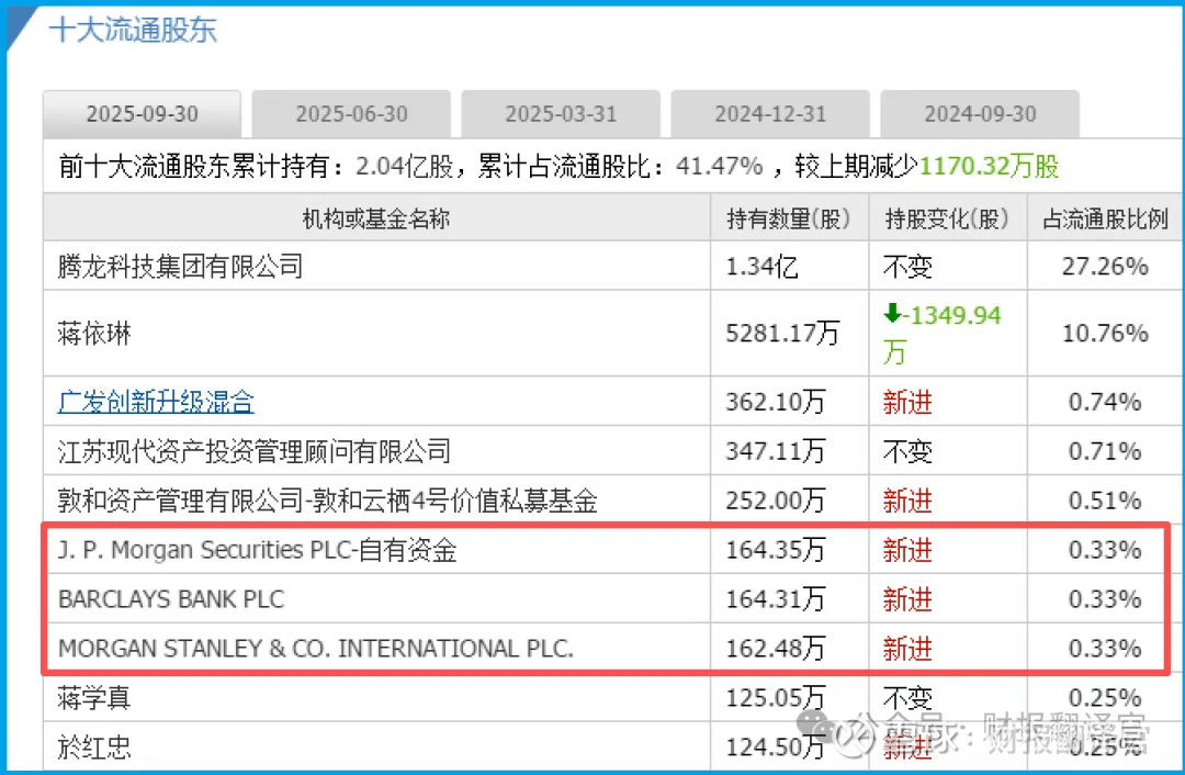 更神秘的是,它的前十大股东里,悄然出现了J.P. Morgan SecuritiesPLC和MORGAN STANLEY & CO. INTERNATIONAL PLC的名字。