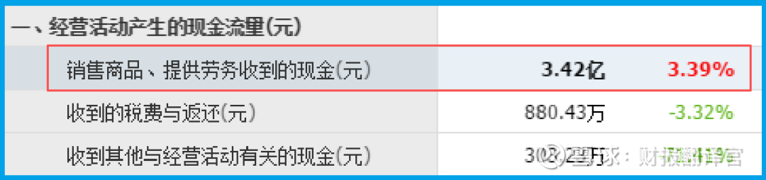 就在利润表唱衰的同时,现金流量表却讲述着完全不同的故事。销售商品收到的现金总额达到3.42亿元,不仅同比增长3.39%,而且超过了当期的营业收入。
