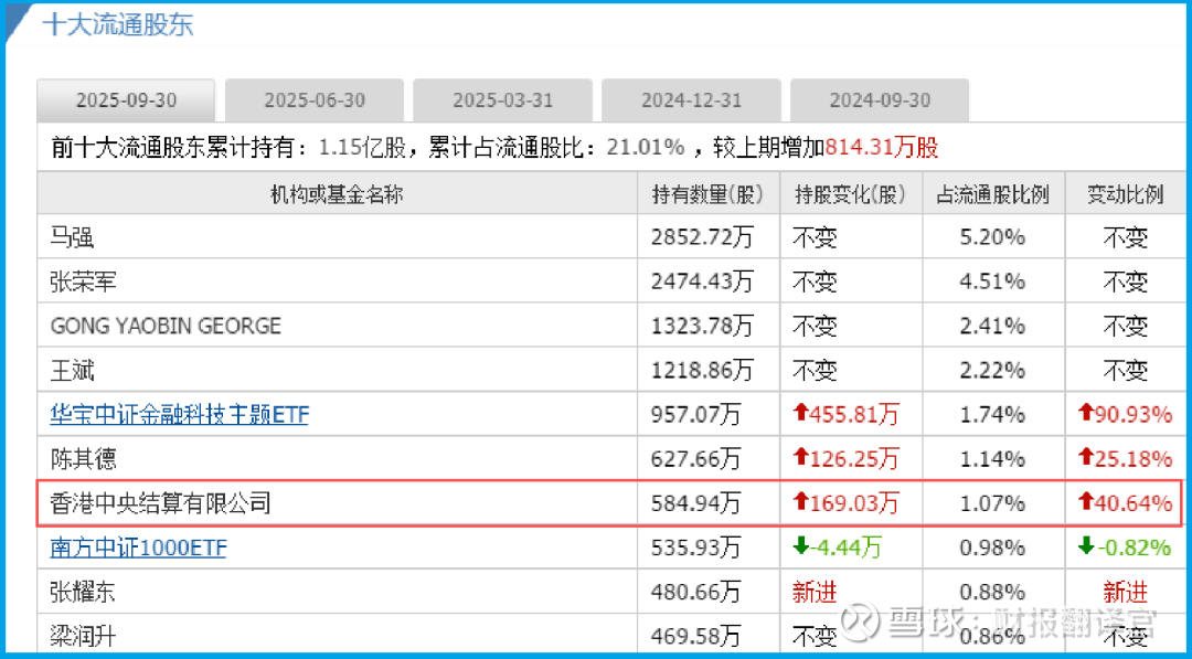如果以上业务分析是合理的,那么另一份关键证据就与之形成了完美闭环:香港中央结算有限公司(代表北向资金)在本季度加仓了41%。