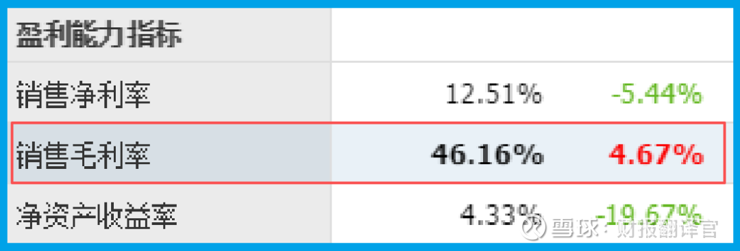 这份财报提供了一个关键物证:公司的销售毛利率达到了46.16%,并且同比提升了4.67%。