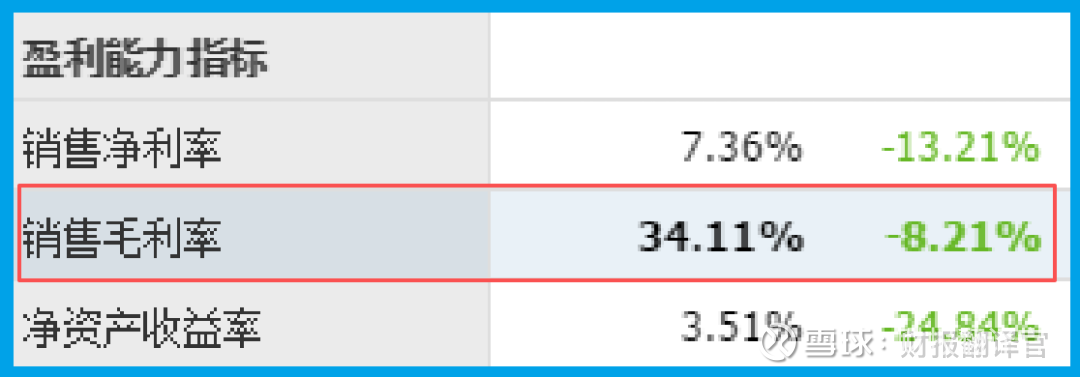 继续勘查,我发现了一个耐人寻味的线索:销售毛利率稳定在34.11%。