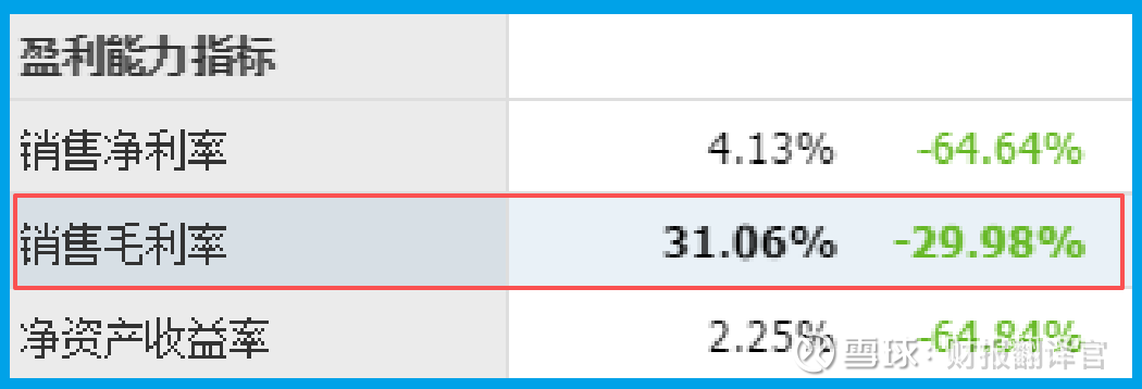 面对利润暴跌,财官的勘查首先指向盈利质量的核心——毛利率。数据显示,销售毛利率为31.06%。