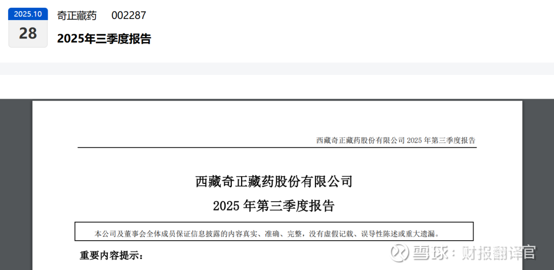 财官:同学们,今天案子的起点,是一家专注于藏药的企业——奇正藏药。2025年三季报,乍一看,金光闪闪:净利润4.24亿,稳中有增。$奇正藏药(SZ002287)$