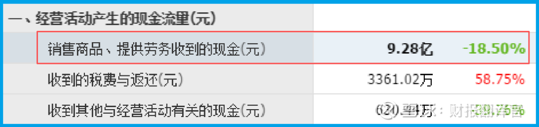 再来看经营活动的全景。公司销售商品收到的现金总额为9.28亿。