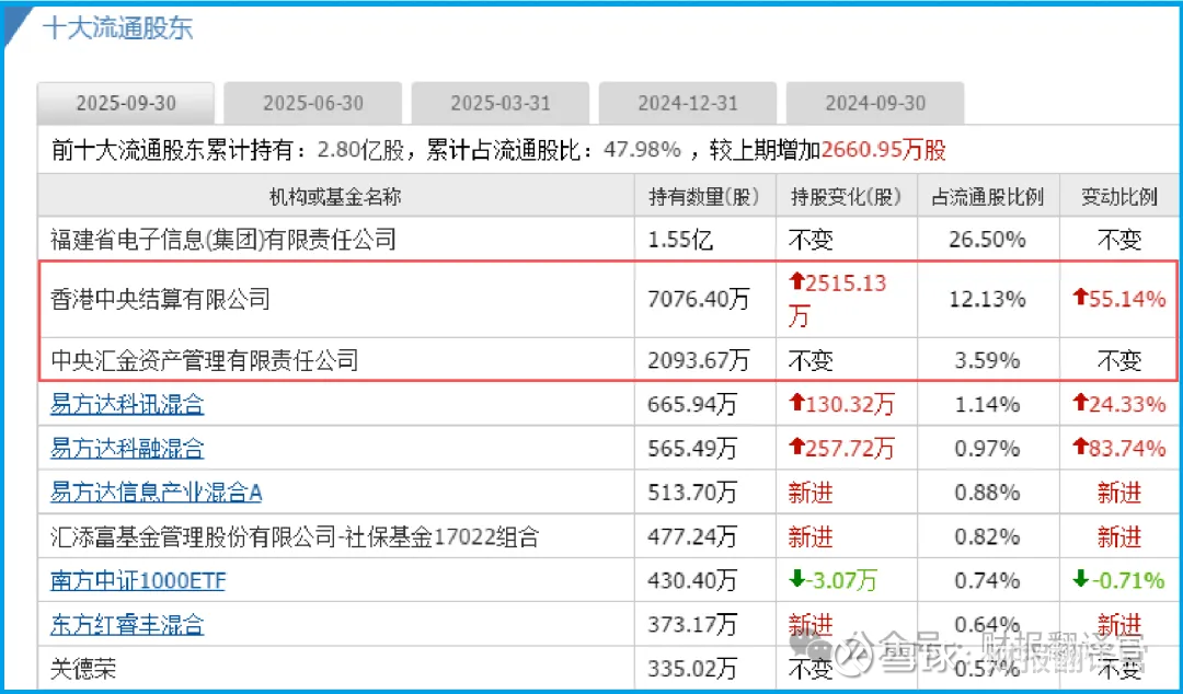 如此稳健又增长的公司,自然会被“聪明钱”盯上。财报股东名单里,出现了两个重量级名字:中央汇金资产管理有限责任公司(证金公司旗下),以及持仓大增55%的香港中央结算有限公司(代表北向资金)。
