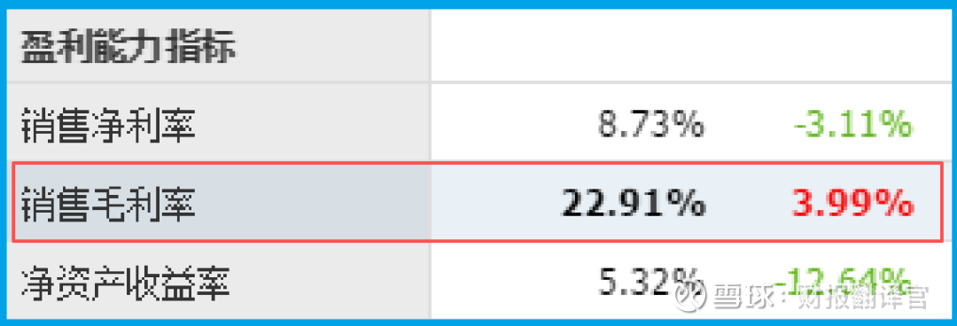 接下来咱们提审第一个关键证人:毛利率。这家公司的销售毛利率22.91%,同比增长了3.99%。