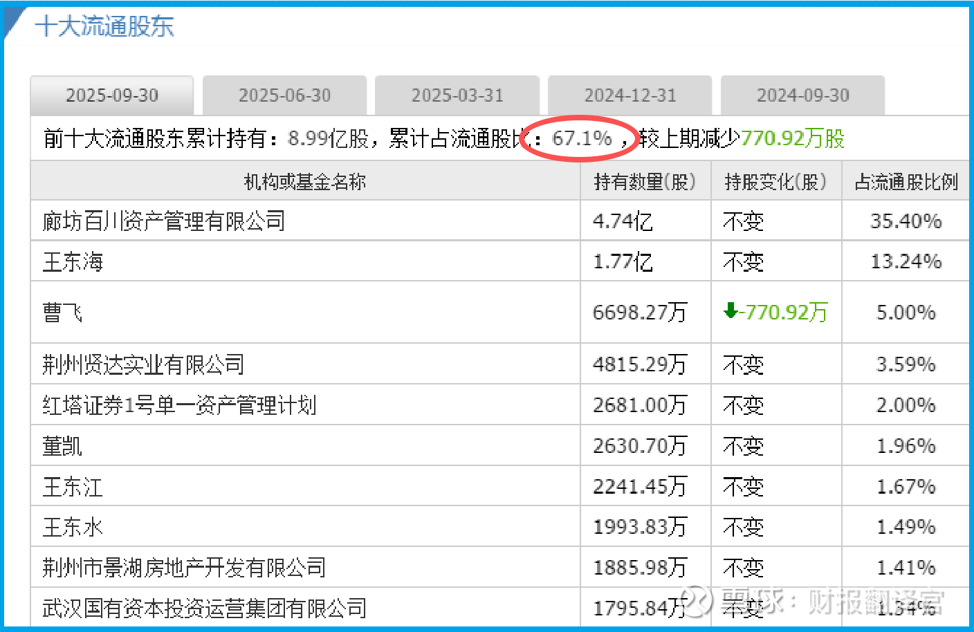 财官拿到这起案子的第一时间,就发现了第一个反常点——前十大流通股东累计持有8.99亿股,占比高达67.1%。