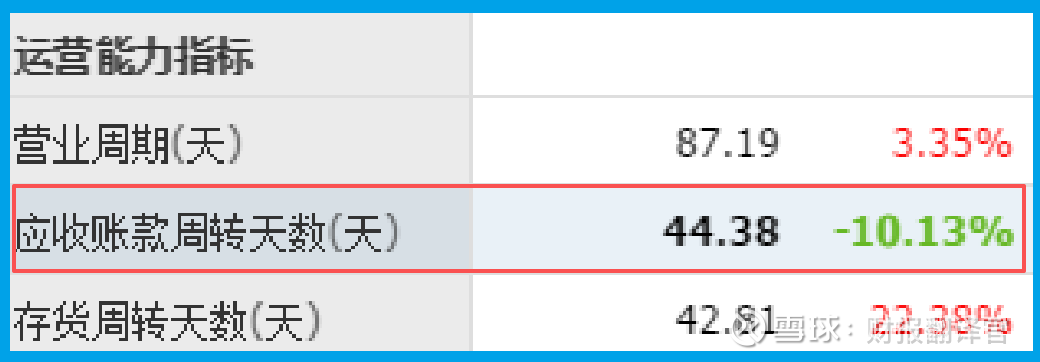 再看运营效率。回款周期44天,同比加快了10.13%。