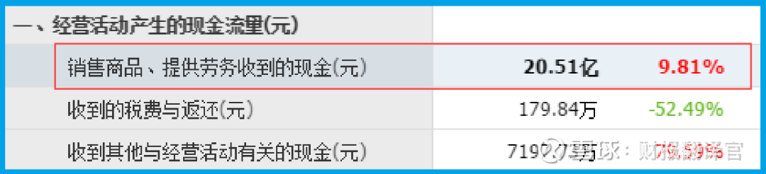 销售商品收到的现金总额为20.51亿,不仅增长了9.81%,还和营业收入相当。