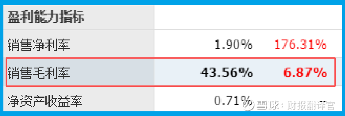 再看毛利率。43.56%,同比增长6.87%。