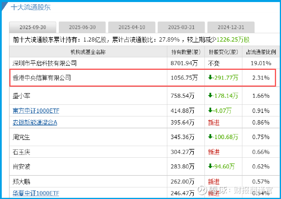 香港中央结算有限公司是它的第二大流通股东,北向资金蹲在里面。