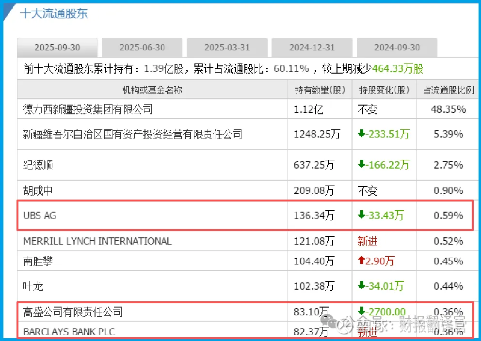 UBS、高盛、巴克莱同时出现在前十大流通股东里,说明外资认可这个逻辑。